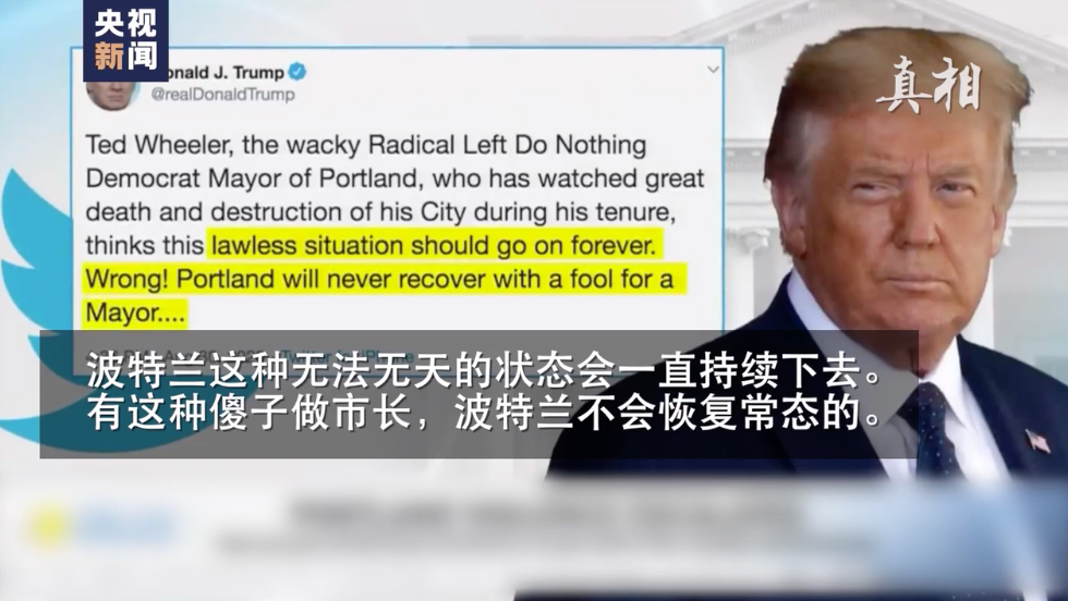 特朗普连发数条推特大骂波特兰民主党籍市长。
