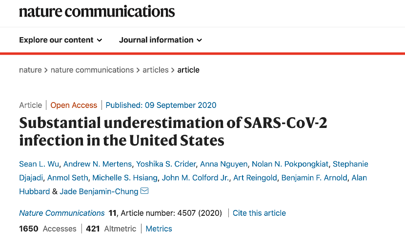 国际学术期刊《自然-通讯》9月9日在线发表了一篇题为《美国新冠感染人数被严重低估》的研究文章。该文章指出,截至4月18日,美国新冠肺炎感染人数可能已经达到了640万例,但当时公布的确诊病例仅为72万多例。