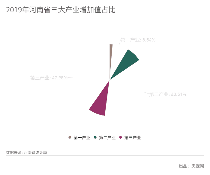 图二:2019年河南省三大产业增加值占比