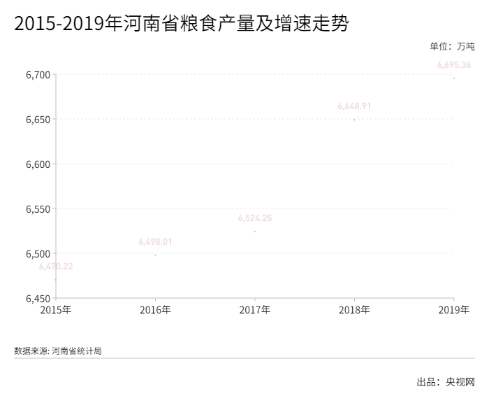 “中原粮仓”河南再获丰收,2019年全年粮食产量6695.36万吨,比上年增加46.45万吨,增长0.7%,再创历史新高。