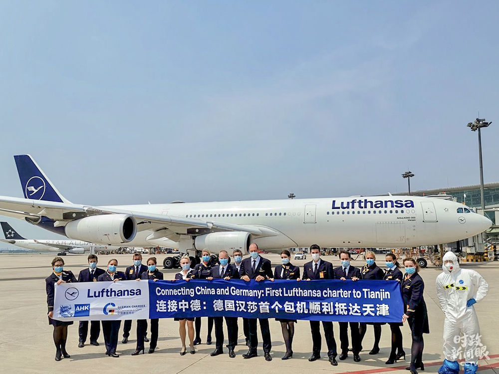 △5月30日,德国汉莎航空LH342航班承运约200名德国企业家、技术专家等旅客,自法兰克福飞抵天津。这是中德之间的首班复工包机,两国间的“快捷通道”得以实现。