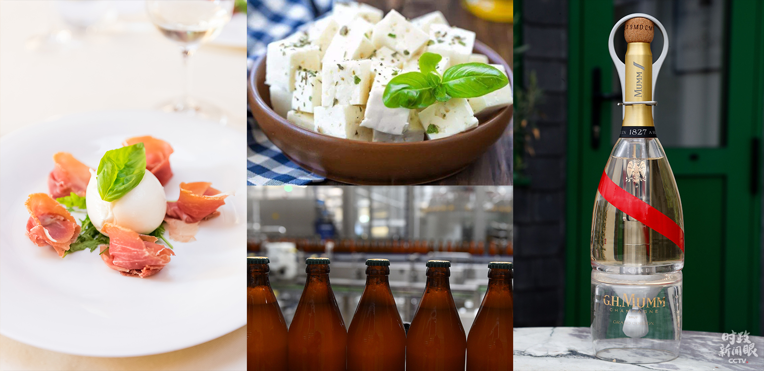 △欧盟地理标志产品包括帕尔玛火腿、菲达奶酪、巴伐利亚啤酒、法国香槟等。