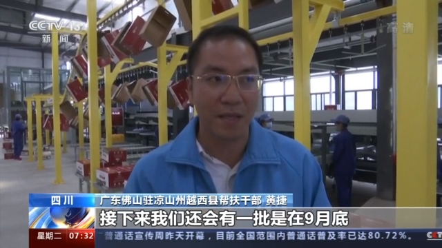 广东佛山驻凉山州越西县帮扶干部 黄捷:接下来我们还有一批是在9月底,我们会试水销往香港、销往澳门,把深山里面的好山好水出的好果销往我们粤港澳大湾区。