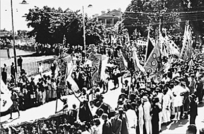 1945年香港社会各界庆祝抗战胜利。资料图片