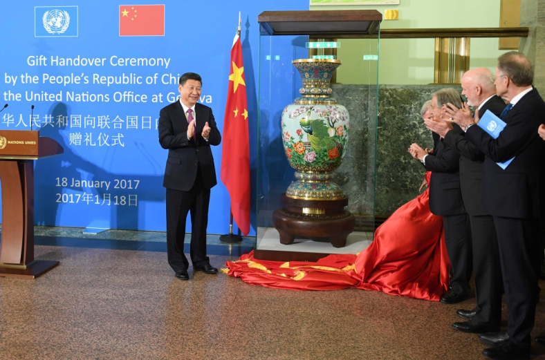 2017年1月18日,习近平主席出席中国向联合国日内瓦总部赠礼仪式。