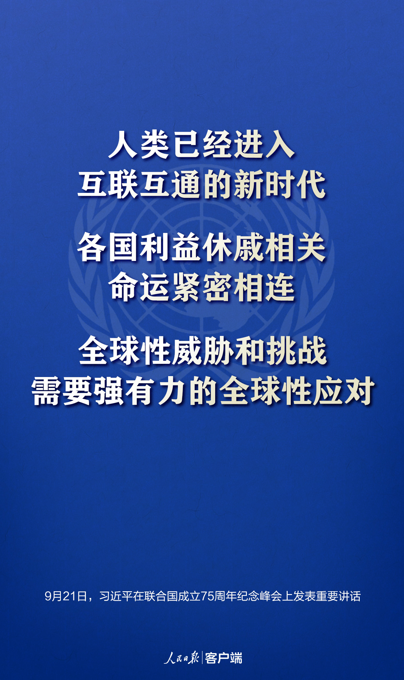 习主席在联合国成立75周年纪念峰会上的讲话金句