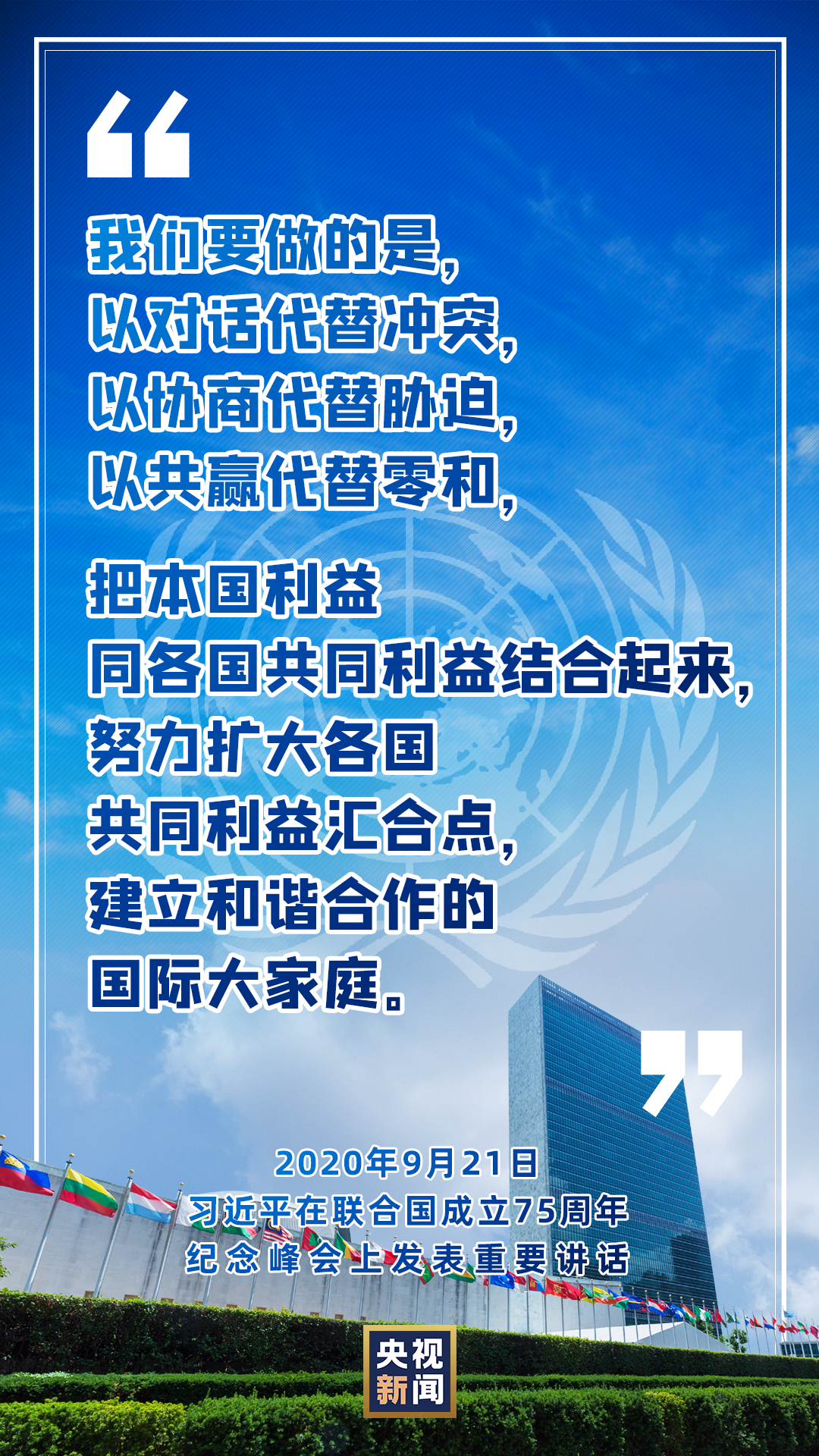 9月21日,国家主席习近平在联合国成立75周年纪念峰会上发表重要讲话。
