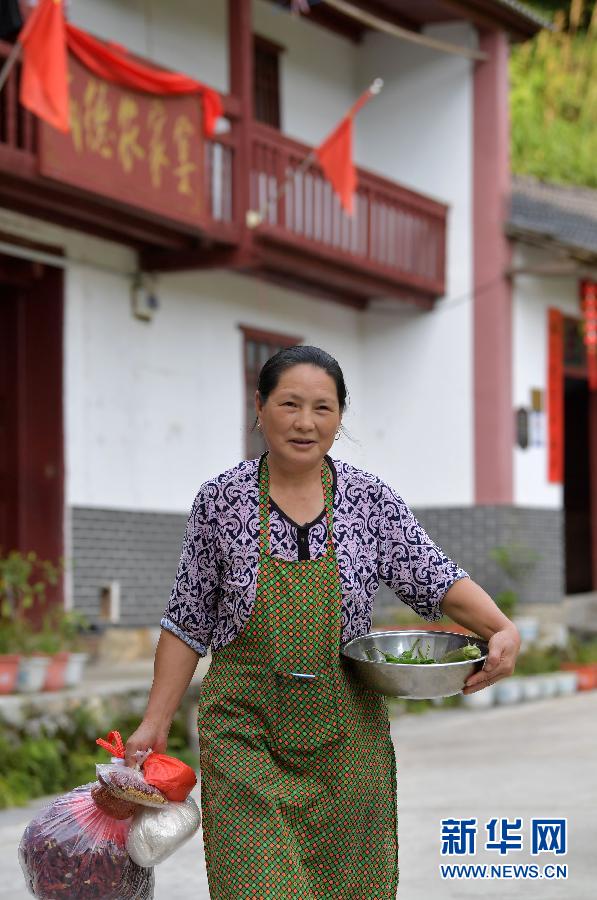 神山村村民彭夏英在自己开的农家乐给游客准备饭菜(7月15日摄)。新华社记者 彭昭之 摄