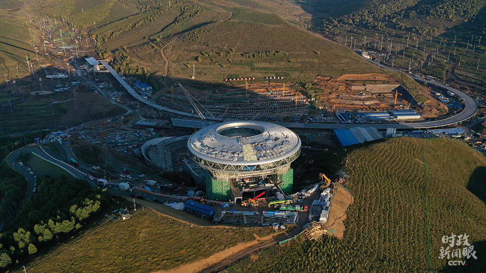 △位于张家口崇礼区的国家跳台滑雪中心正在加紧施工中,因场馆造型与中国传统饰物“如意”契合,被称为“雪如意”。