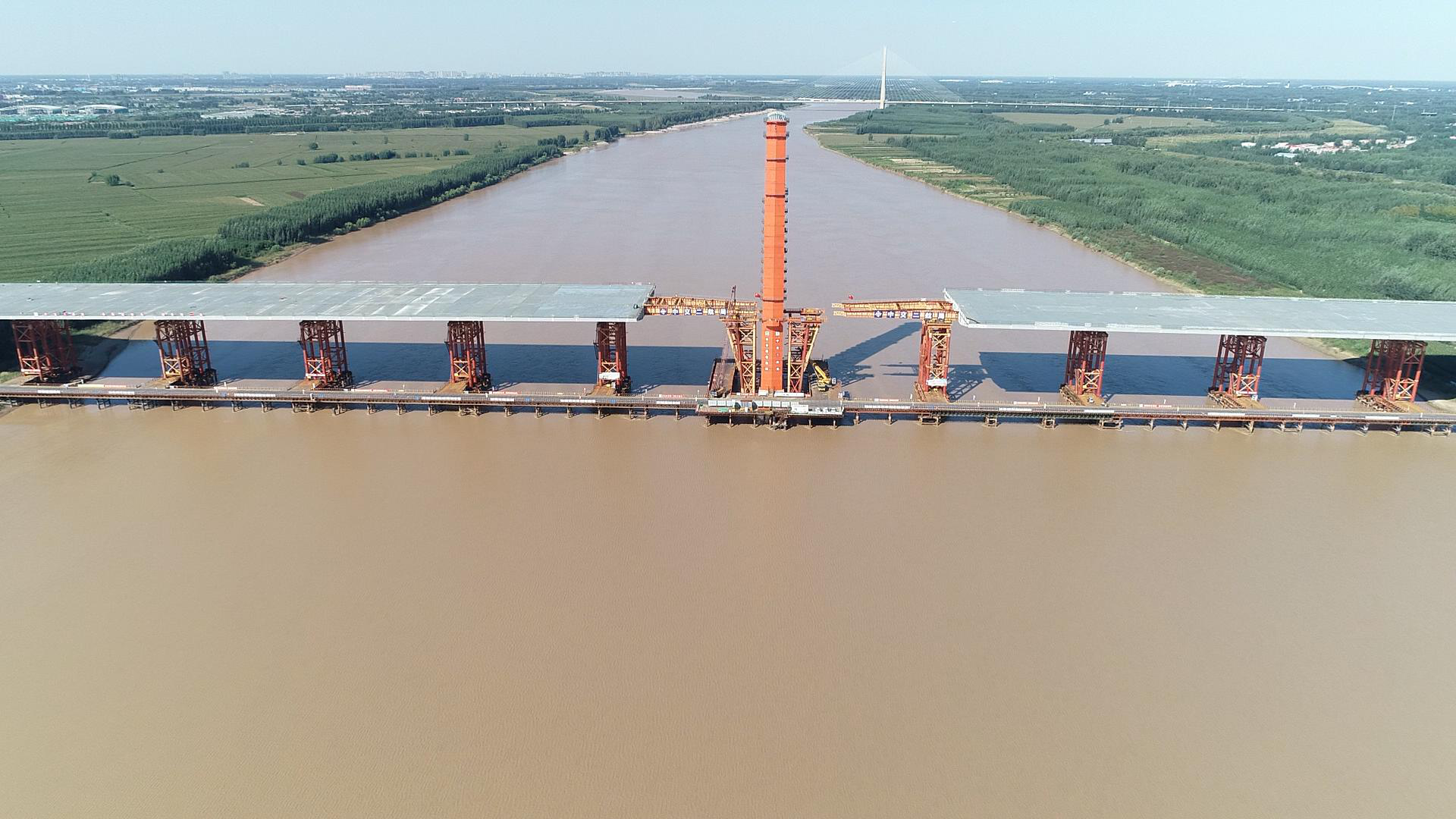 目前,凤凰黄河大桥主桥钢箱梁总拼已经竣工,预计明年年底达到通车条件,建成后将是世界上桥面最宽的特大型组合钢箱梁桥。