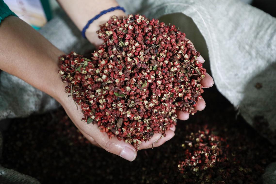 包括形状选、比重选、风选、磁选、色选、X光选、金检、毛发选共八道工序,确保选出最优质的花椒提供给客户。正因为强调品质,张云海公司的花椒产品已经是王守义十三香、海底捞火锅等知名品牌企业的稳定供货商。