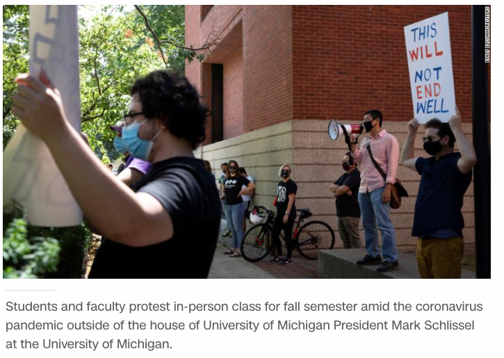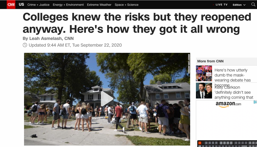 △美国有线电视新闻网报道,高校明知风险却坚持开学,细数它们的种种错误政策。