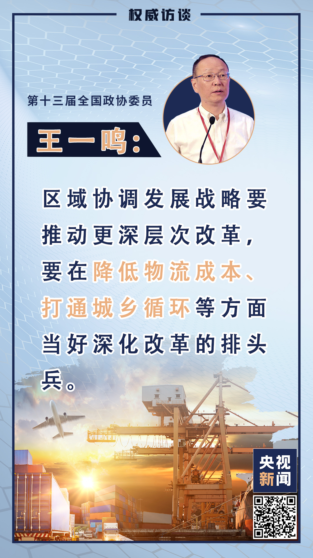 王一鸣表示,区域协调发展战略要推动更深层次改革,要在降低物流成本、打通城乡循环等方面当好深化改革的排头兵。