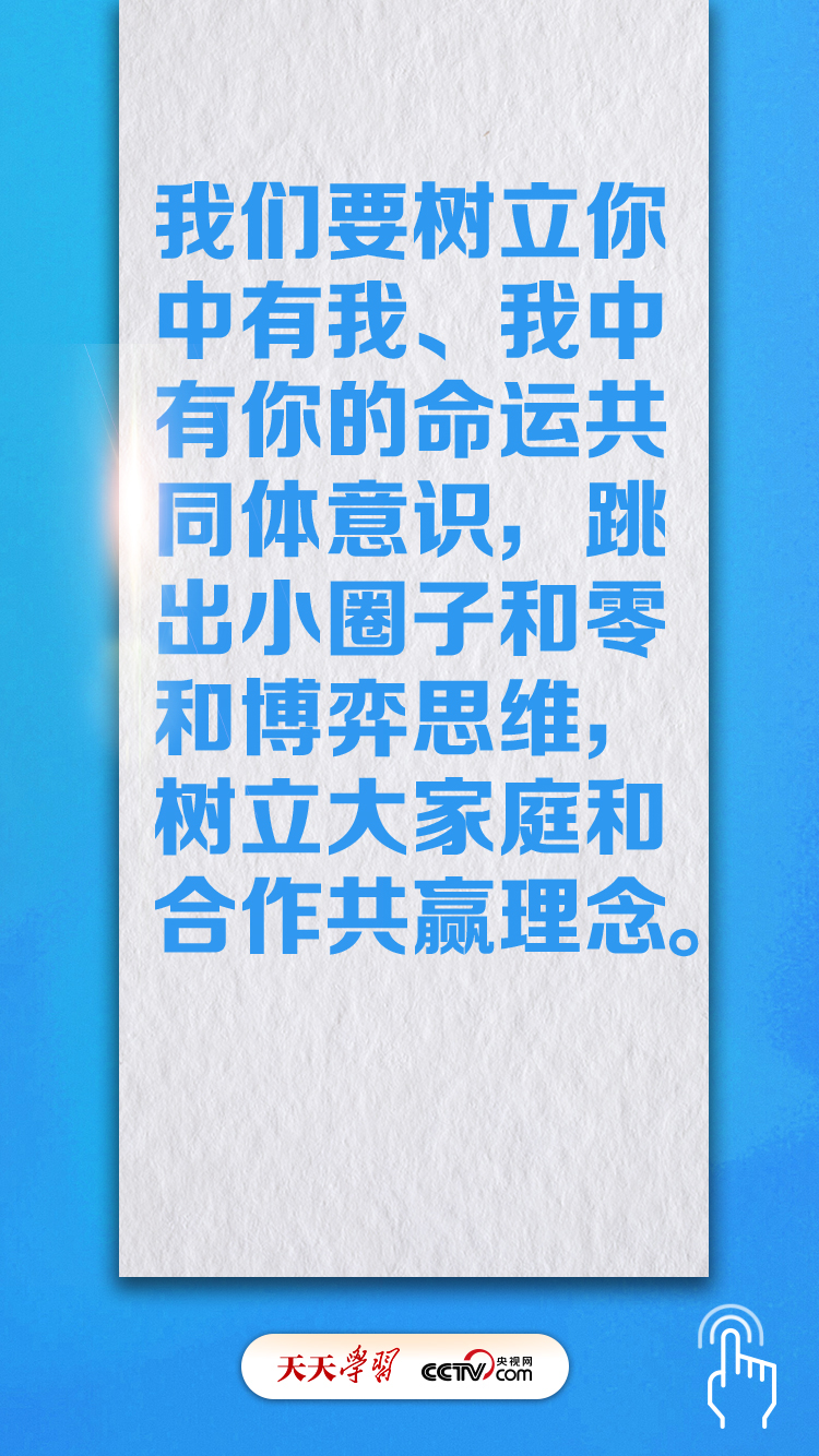 疫情发生以来,习近平主席在多个“云外交”场合强调,只有构建人类命运共同体才是人间正道。