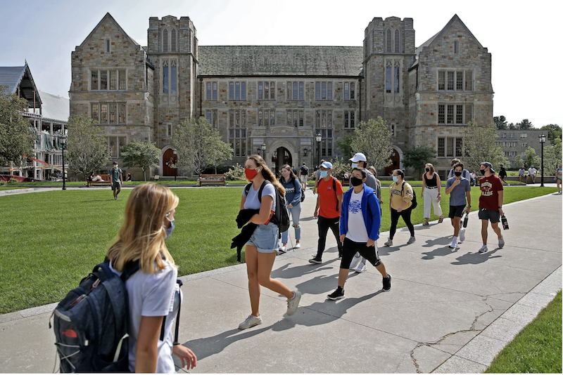 △波士顿大学校园内的学生(图片来源:《波士顿先驱报》)