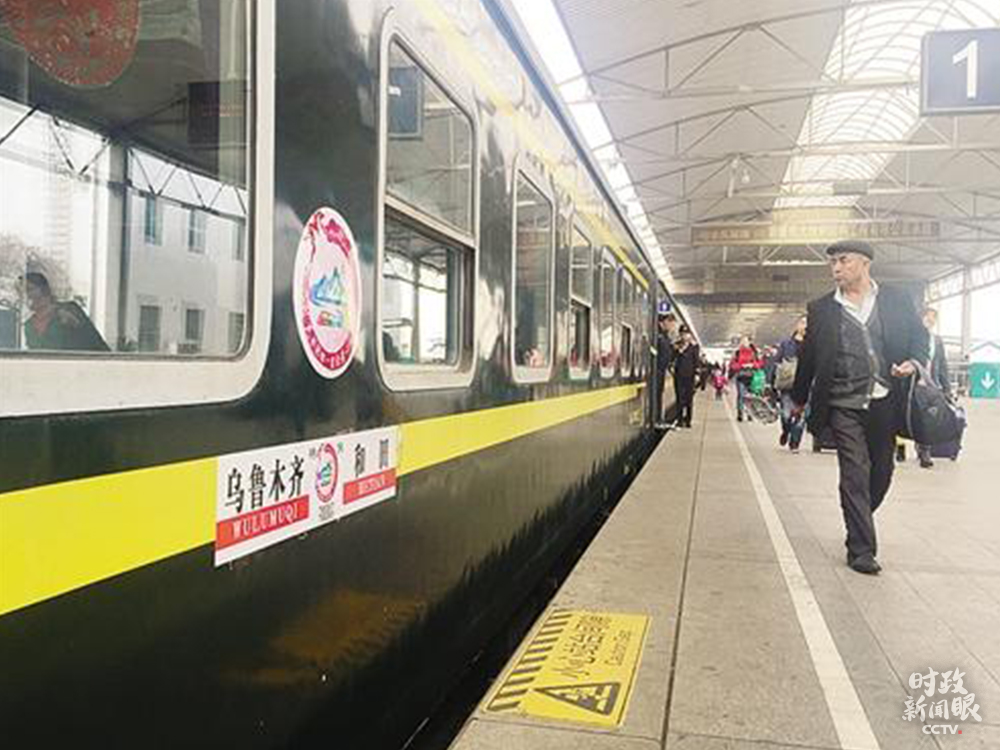 △2017年3月25日,“民族团结一家亲号”首发列车从乌鲁木齐开向和田。列车上有近900名干部职工赴南疆四地州结对认亲,开展帮扶。