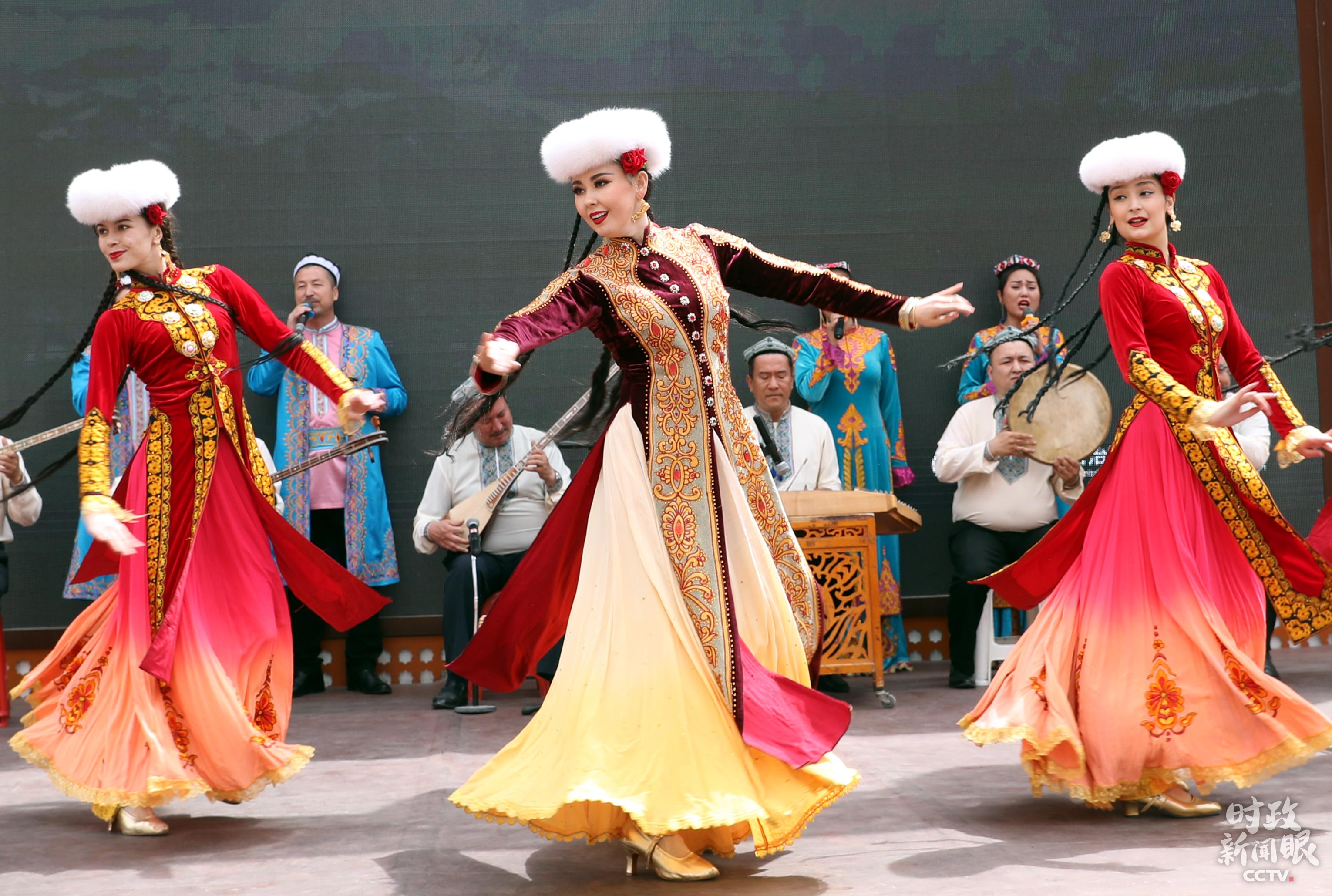 △乌鲁木齐某景区演员表演新疆民族舞蹈。