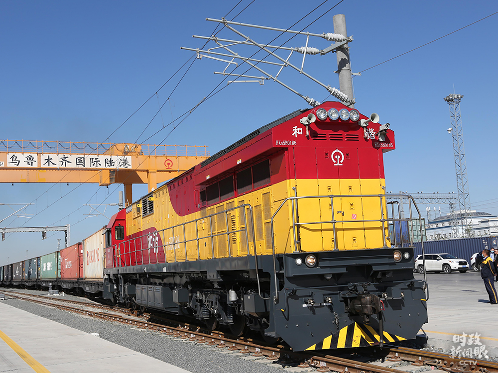 △9月8日,乌鲁木齐国际陆港区,一列满载日用品的中欧班列启程。