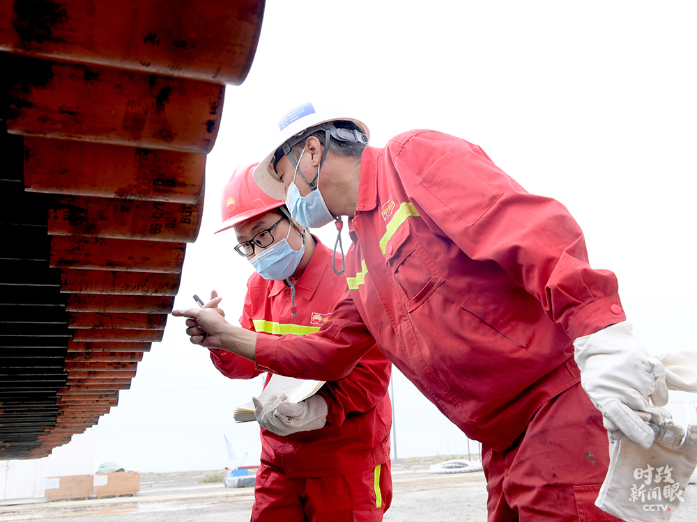 △中国石油大学(北京)克拉玛依校区2020届毕业生王首都(左)在克拉玛依钻井一线工作。