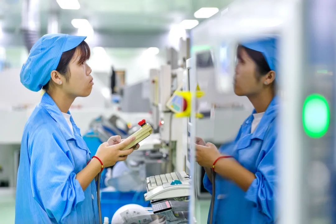△2020年9月14日,位于浙江省湖州市长兴经济技术开发区的一家科技公司车间,工人正在检查贴片坐标准确性。