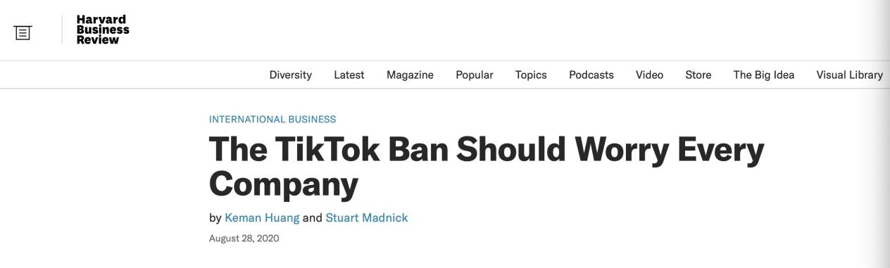△《哈佛商业评论》:TikTok禁令让所有企业感到担忧