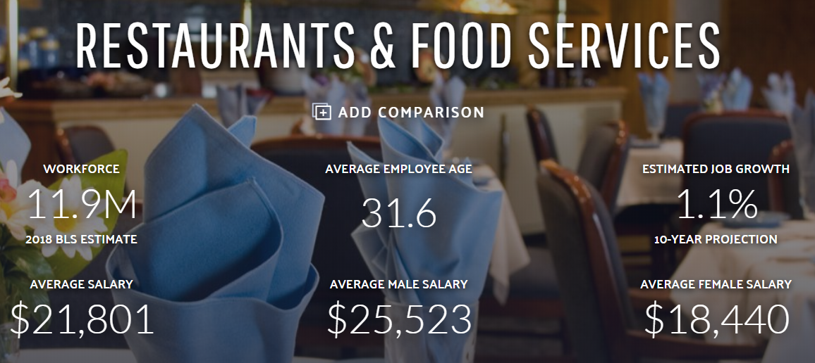 △美国餐饮业男性平均工资约为2.5万美元,制造业男性平均工资为6.8万美元