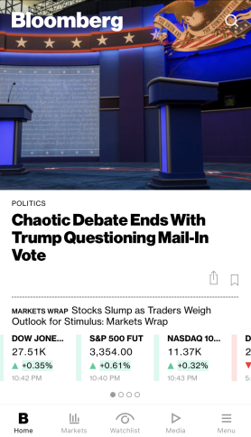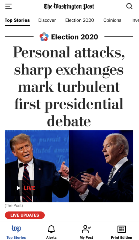 《纽约时报》头条写道,混乱的首场大选辩论中出现了尖锐的人身攻击和相互辱骂;《华盛顿邮报》头条写道,人身攻击、激烈交锋标志着混乱的首场辩论;彭博社头条写道,混乱的辩论以特朗普质疑邮寄投票结束;《国会山报》头条写道,拜登在首场辩论中称特朗普为“骗子”和“小丑”;美联社头条写道,辩论怒火:拜登对不断插嘴的特朗普说“哥们儿,闭嘴”;美国有线电视新闻网(CNN)头条写道,第一场辩论纯属混乱……