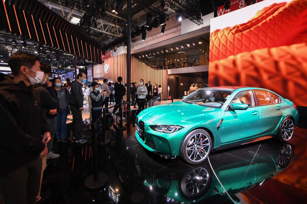 ↑10月4日,观众在宝马汽车展台参观展出的汽车。 新华社记者鞠焕宗摄