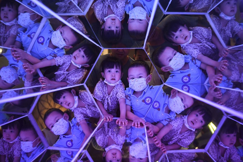 ↑10月4日,小朋友在广东科学中心体验万花筒。新华社记者 邓华 摄