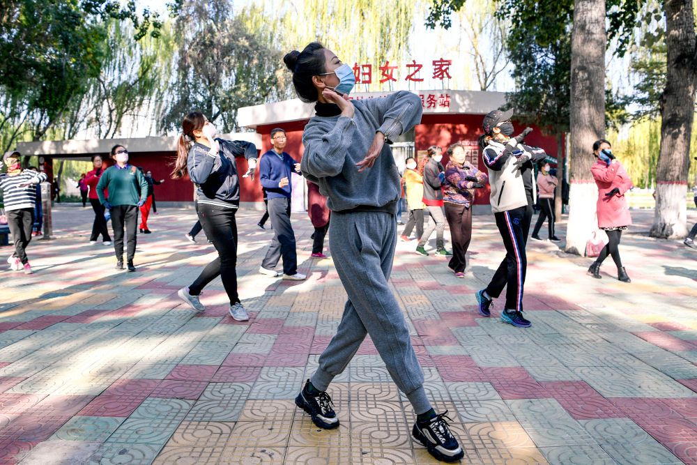 ↑10月5日,市民在银川中山公园跳广场舞。新华社记者 冯开华 摄