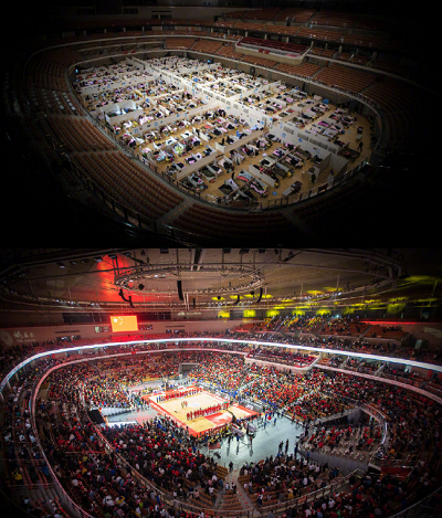 △武汉体育中心疫情期间曾被用作“方舱医院”(图片来源:新华社)