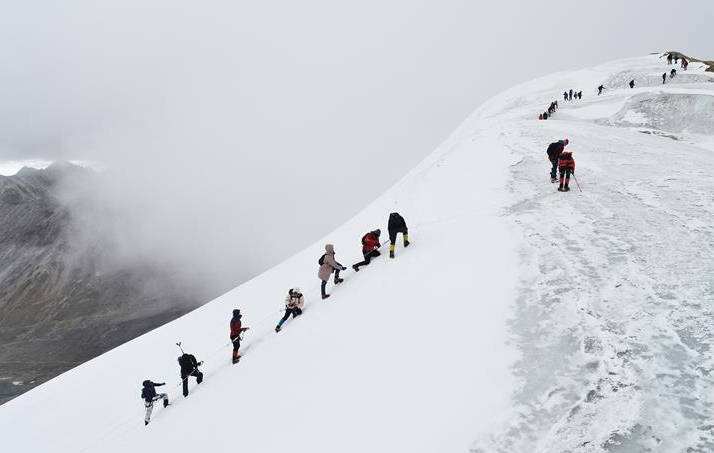 △10月5日,登山爱好者在西藏向洛堆峰峰顶进发。