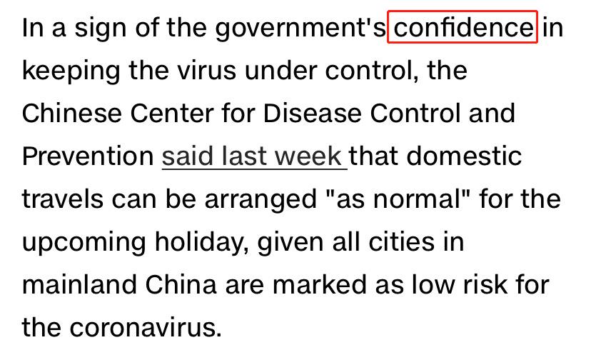 CNN认为,中国人民得以在黄金周出门度假的前提是“中国控制住了疫情”。