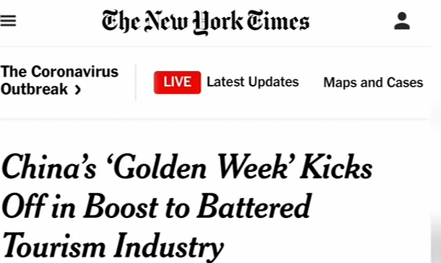 《纽约时报》称,“火车上满载着游客,是中国从疫情中恢复过来的明确信号。”