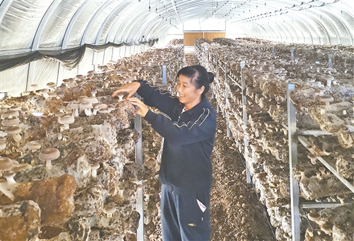 菇农在甘肃陇西县菜子镇二十铺村食用菌生产示范基地采摘香菇。经济日报·中国经济网记者 薛志伟摄