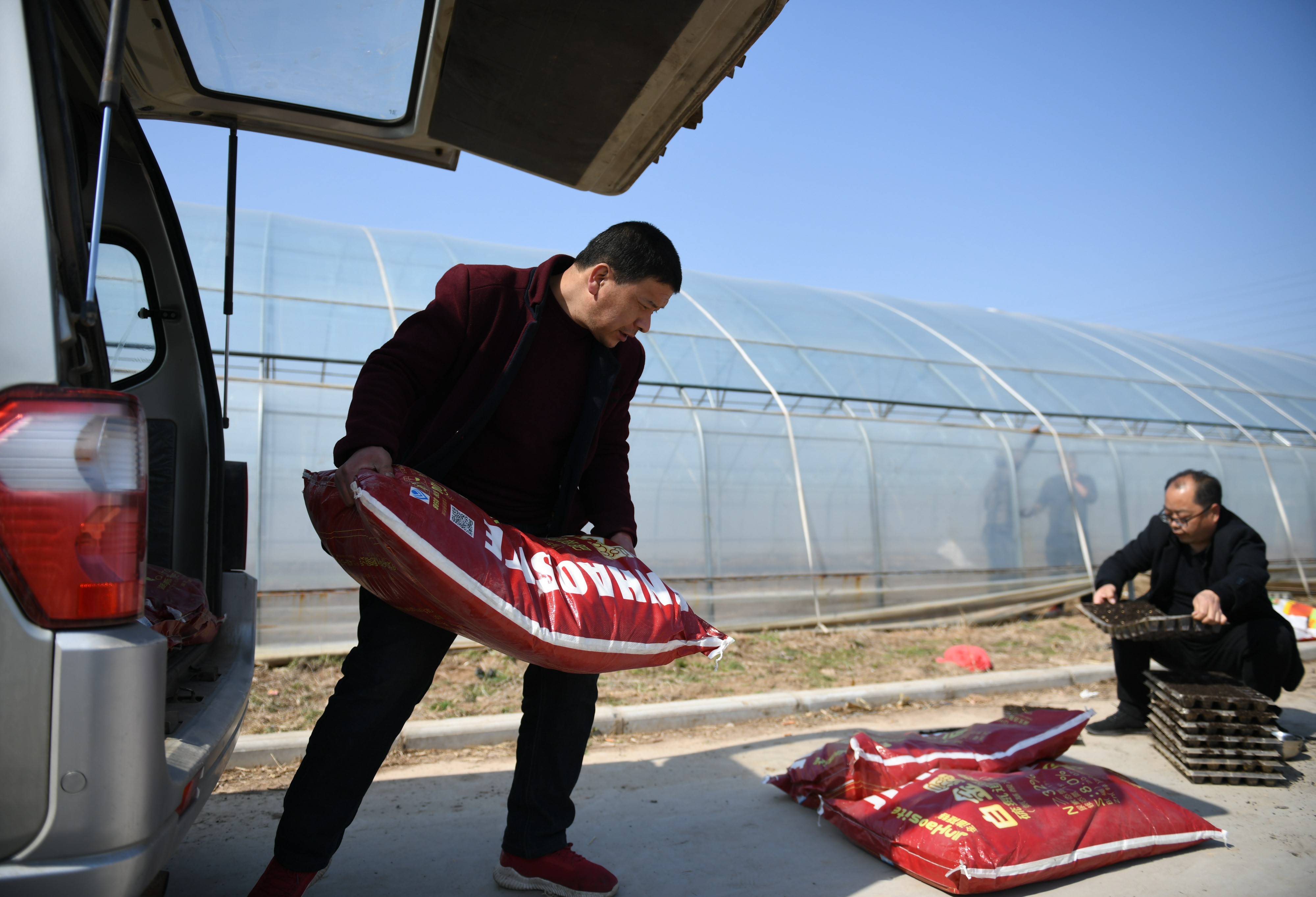 2020年3月4日,陕西蒲城县供销联社荆姚镇供销社的工作人员为蒲城县联瑞农业发展有限公司配送农资。
