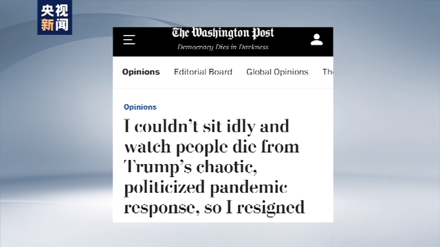 美前卫生官员:美国政府将疫情政治化导致成千上万人本可避免的死亡