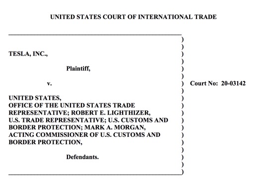 特斯拉,赶在诉讼到期前的最后几天,把诉状交到了美国贸易法院。