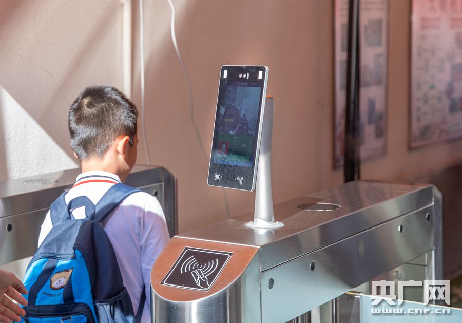 在入园处,两台AI人脸识别安全出入设备,可以自动识别家长身份(央广网发 通讯员供图)