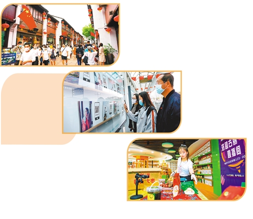 图① 国庆中秋假期,各地景区迎来游客高峰,消费火爆。在江苏苏州市七里山塘文化街区,国旗与红灯笼扮靓老街,游人在这里品味姑苏文化之美。