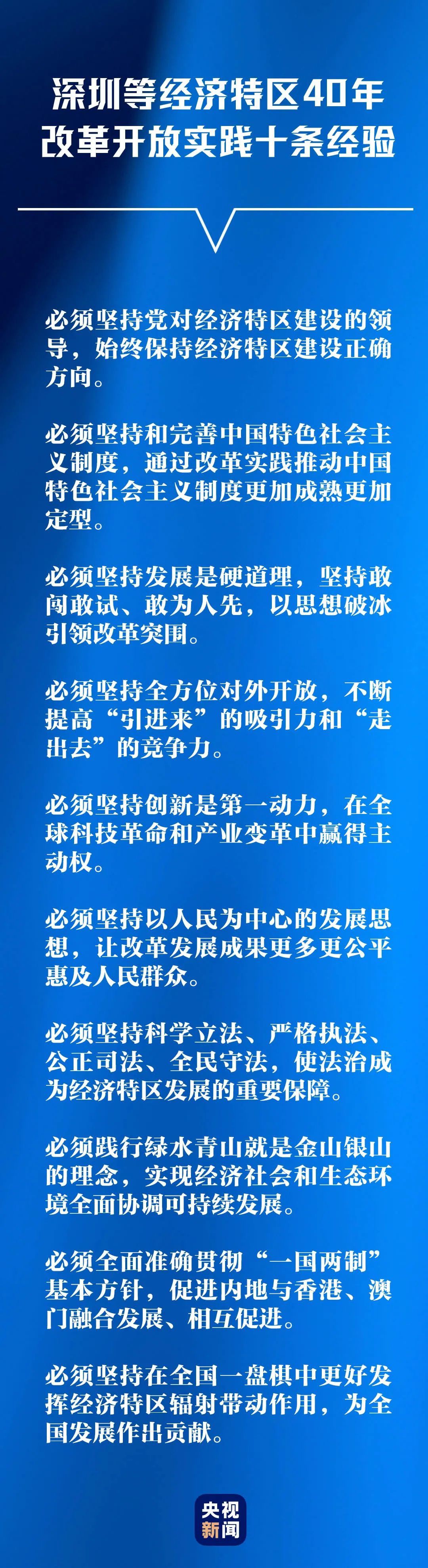 坚持发展是硬道理,坚持敢闯敢试、敢为人先,以思想破冰引领改革突围,深圳创造了一个又一个发展奇迹。深圳经济特区40年改革开放实践,积累了宝贵经验,深化了我们对中国特色社会主义经济特区建设规律的认识。