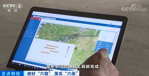 河南鹤壁浚县优质花生现代农业产业园生产负责人 宋法军:这一台花生捡拾机一天能收700亩地,比传统效率提升了5倍。很多农活在电脑上都能完成,电脑、手机现在就是我们的新农具。