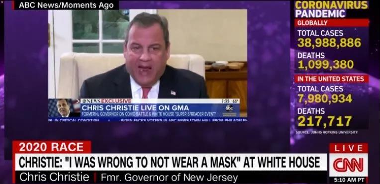 △克里斯蒂:我在白宫没戴口罩大错特错(CNN报道截图)