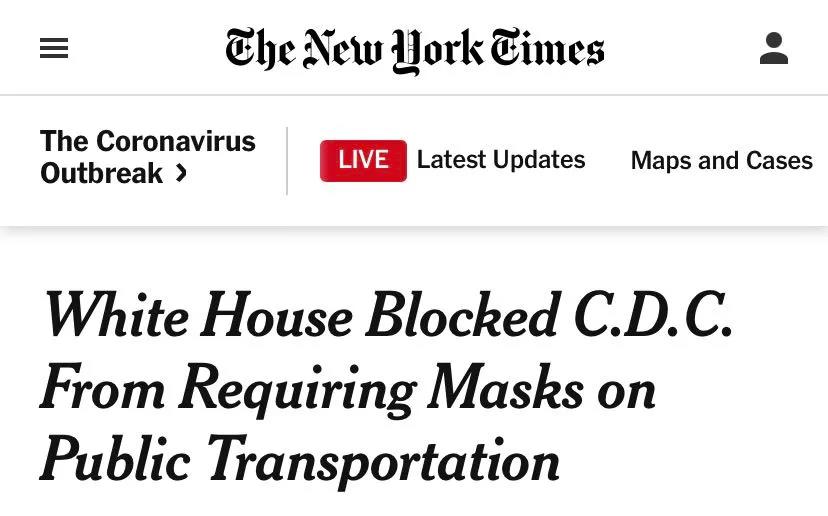 《纽约时报》报道称,美国疾控中心9月曾起草一项规定,要求所有乘客和乘务员在美国公共及商业交通工具上必须佩戴口罩。因为多项研究已证明,佩戴口罩是抗击新冠肺炎最简单有效的公共卫生手段。但结果,这项草拟规定遭到白宫的否决。