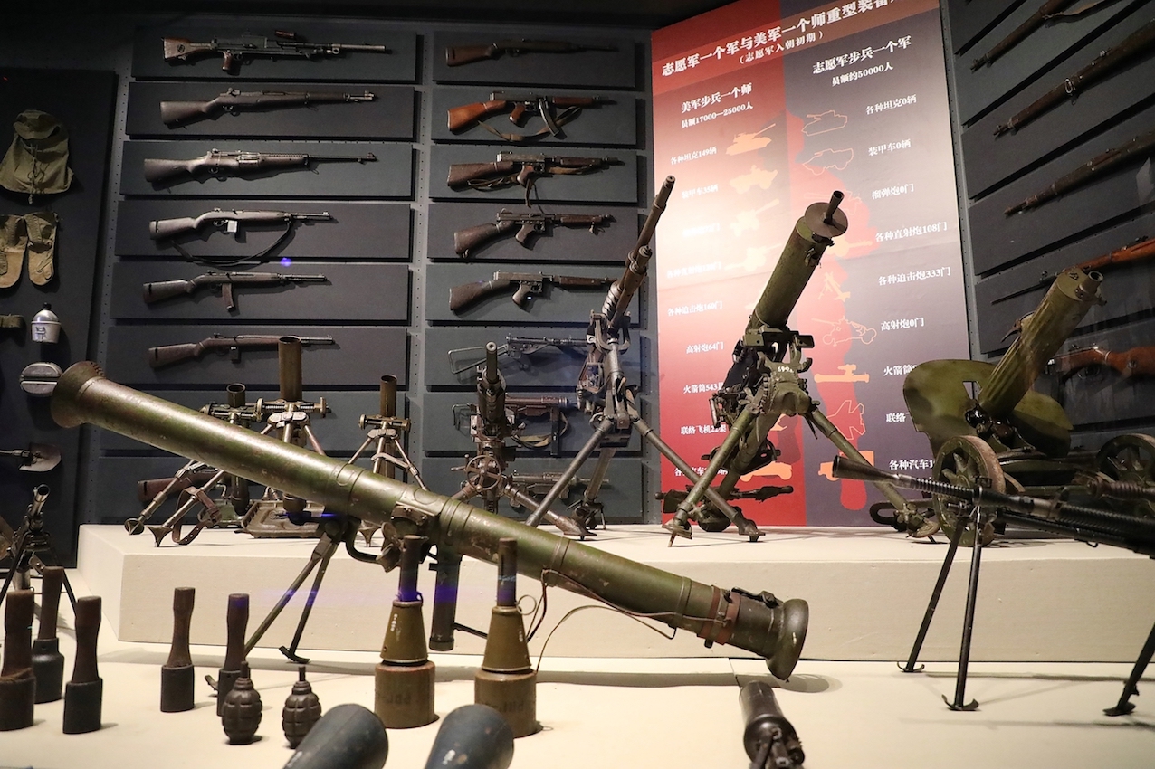 △陈列在辽宁丹东抗美援朝纪念馆中的枪支、火炮。