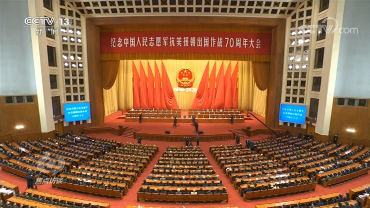 央视网消息(焦点访谈):70年前,面对武装到牙齿的强敌,由中华民族优秀儿女组成的中国人民志愿军,雄赳赳、气昂昂,跨过鸭绿江,开始了两年零9个月艰苦卓绝的浴血奋战。70年来,我们始终没有忘记老一辈革命家为维护国际正义、捍卫世界和平、保卫新生共和国所建立的不朽功勋,始终没有忘记谱写了气壮山河英雄赞歌的中国人民志愿军将士以及所有为这场战争胜利作出贡献的人们,始终没有忘记在战争中英勇牺牲的烈士们。23日上午,纪念中国人民志愿军抗美援朝出国作战70周年大会在人民大会堂隆重举行,中共中央总书记、国家主席、中央军委主席习近平在会上发表重要讲话。