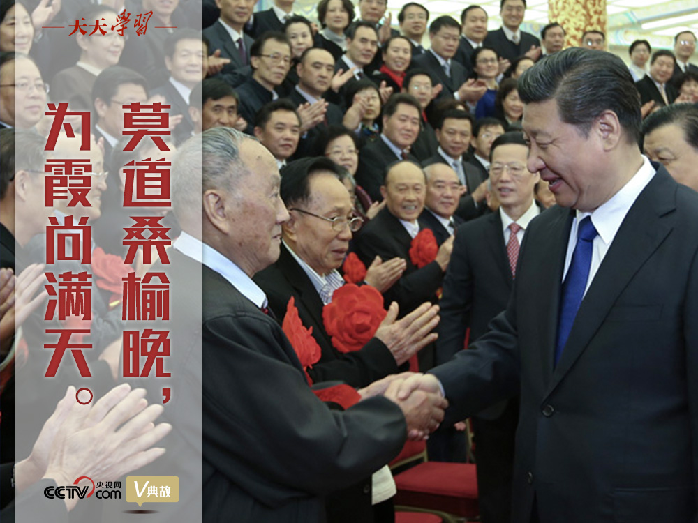 “莫道桑榆晚,为霞尚满天。”2014年11月26日,习近平总书记在会见全国离退休干部先进集体和先进个人代表时,用刘禹锡的诗句鼓励广大老同志继续发挥余热,作出积极贡献。