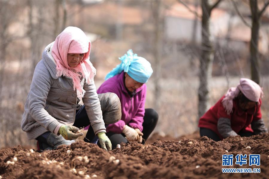 3月11日,甘肃省定西市渭源县元古堆村村民在种植百合。新华社发(马希平 摄)