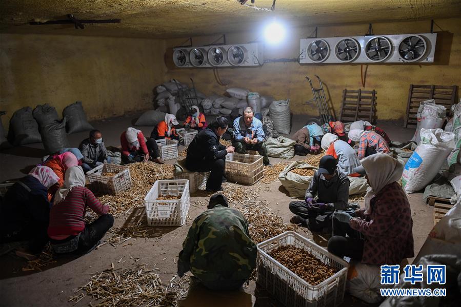 5月14日,村民在内蒙古赤峰市松山区大庙镇小庙子村中药材合作社筛选中药材。新华社记者 刘磊 摄