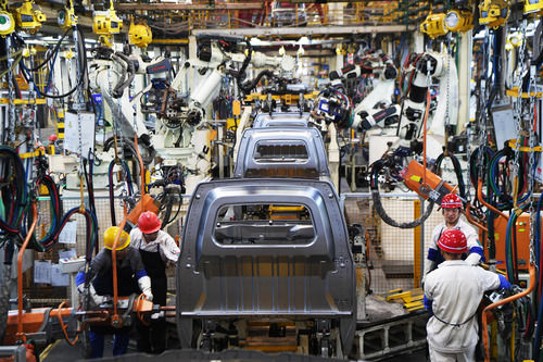 工作人员在位于重庆万州的长安跨越智能化生产车间内作业(9月23日摄)。新华社记者 王全超 摄